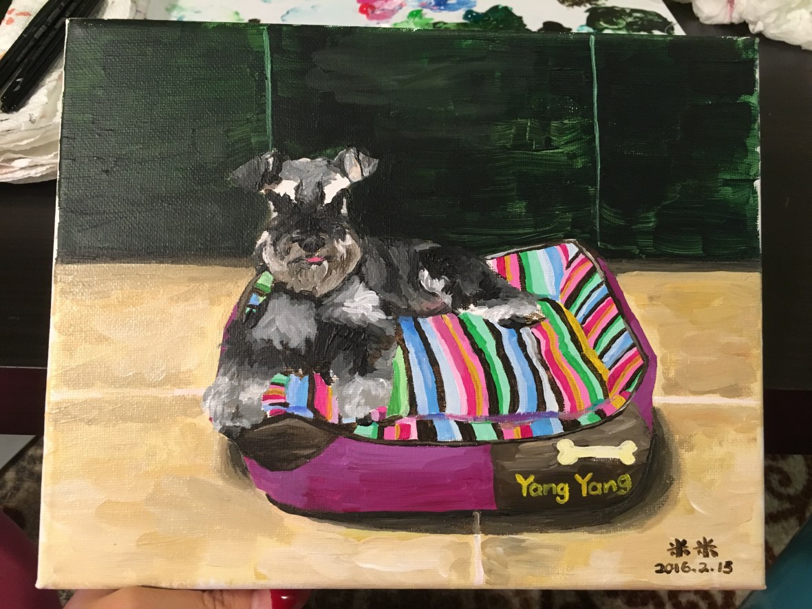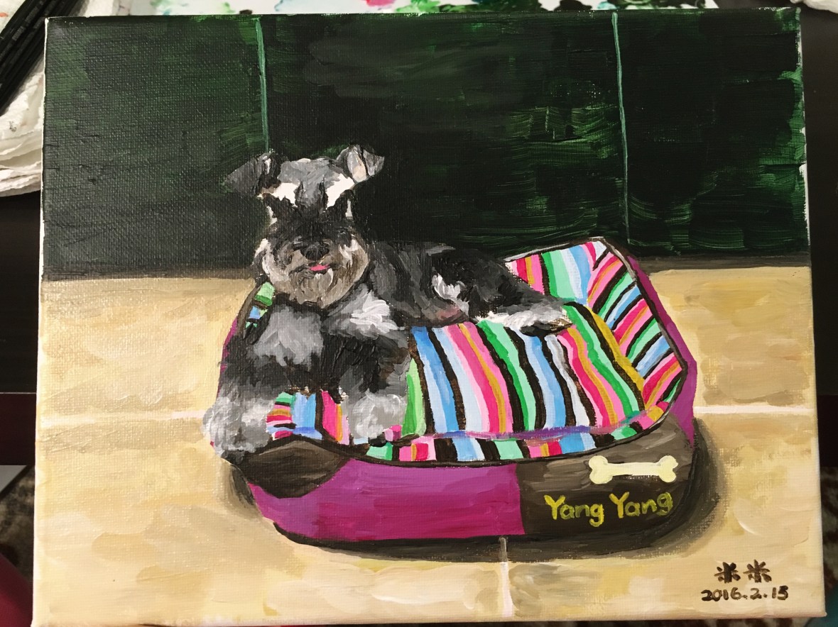 Yang yang 羊羊 February 15, 2016September 11, 2019 • meiyizhao My baby schnauzer Yangyang. He gave me so much happiness in the last 17 years. This is also my first acrylic paint. Share this: Share on X (Opens in new window) X Share on Facebook (Opens in new window) Facebook Share on LinkedIn (Opens in new window) LinkedIn More Share on Reddit (Opens in new window) Reddit Share on Pinterest (Opens in new window) Pinterest Like Loading...