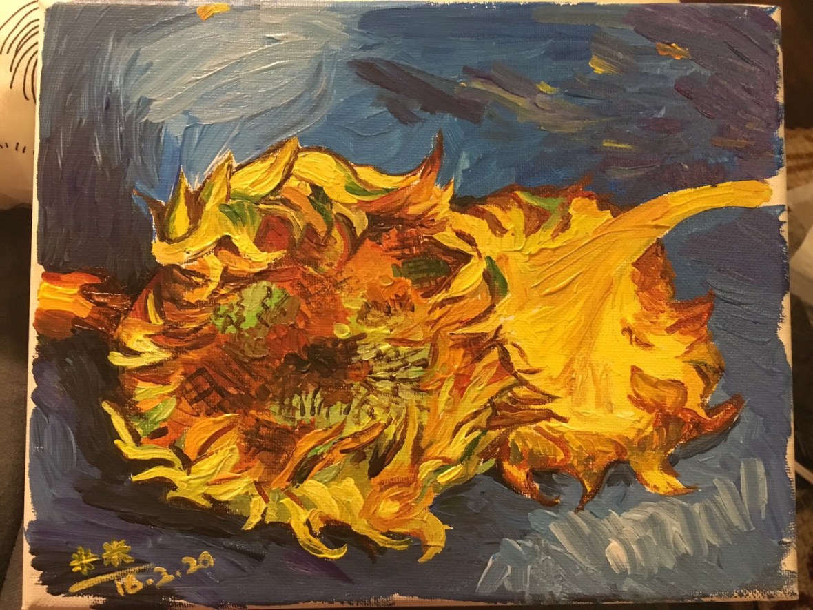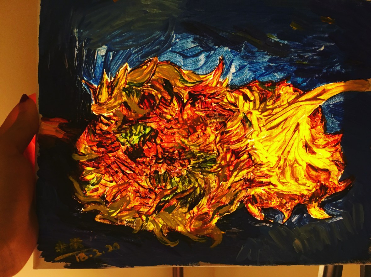 Copied Sunflower from Vincent van Gogh 临摹梵高的向日葵 February 20, 2016September 11, 2019 • meiyizhao I love his original artwork. It’s interesting to see how it looks like through the light. Share this: Share on X (Opens in new window) X Share on Facebook (Opens in new window) Facebook Share on LinkedIn (Opens in new window) LinkedIn More Share on Reddit (Opens in new window) Reddit Share on Pinterest (Opens in new window) Pinterest Like Loading...